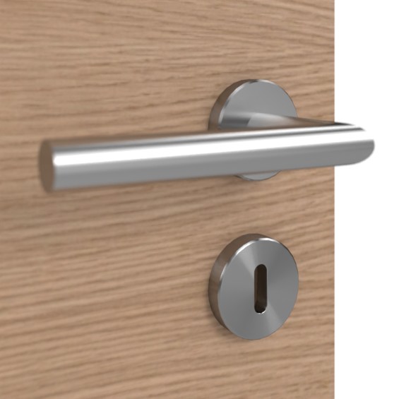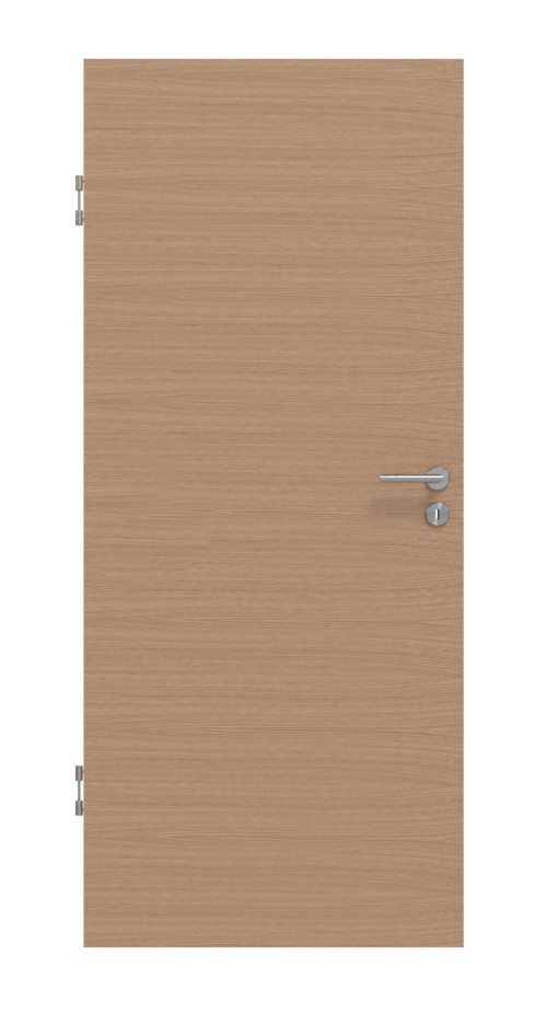 Dzięki dwóm trójczęściowym zawiasom skrzydło drzwiowe z pełnym rdzeniem ma pewne osadzenie w ościeżnicy. Obniżana uszczelka podłogowa, dostarczana wraz z zamkiem cylindrycznym, skutecznie chroni przed wnikającym hałasem.