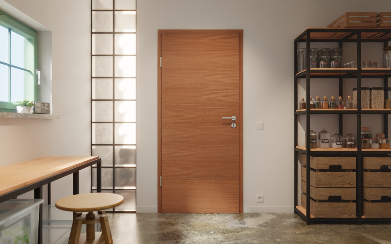 Drzwi dźwiękoszczelne pokryte fornirem z opadającą uszczelką podłogową:
