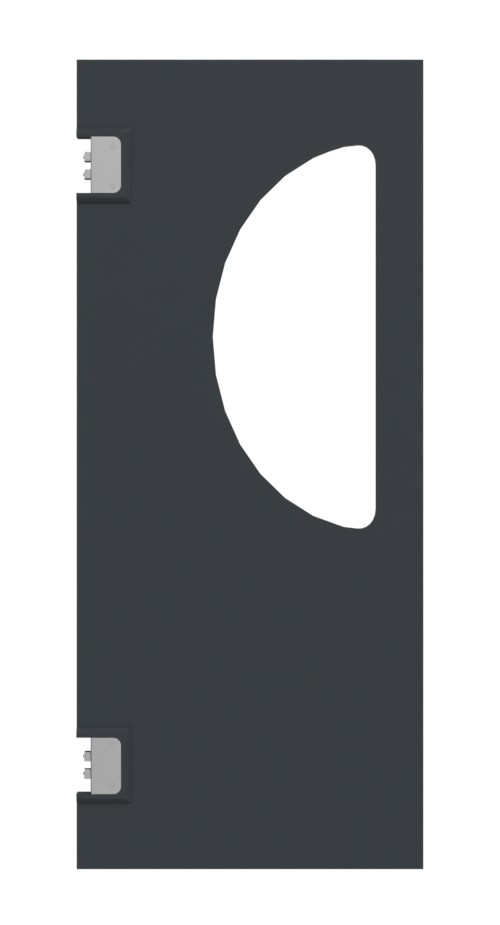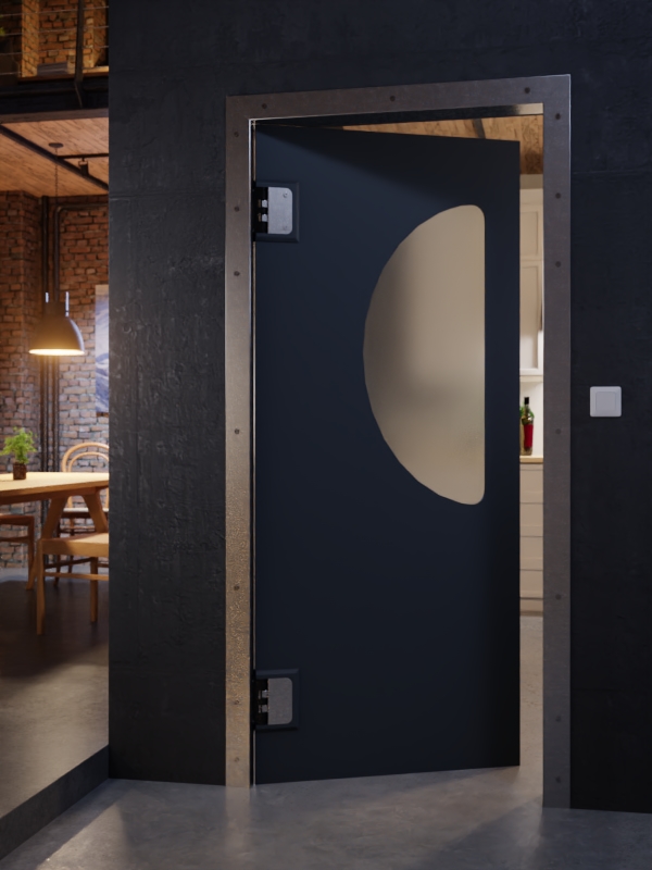 Standardowo drzwi są produkowane w RAL 7016. Na życzenie dostępny jest również inny kolor powierzchni za dodatkową opłatą. Półokrągłe przeszklenie zapewnia ekstrawaganckie doświetlenie i umożliwia podgląd do sąsiedniego pomieszczenia.