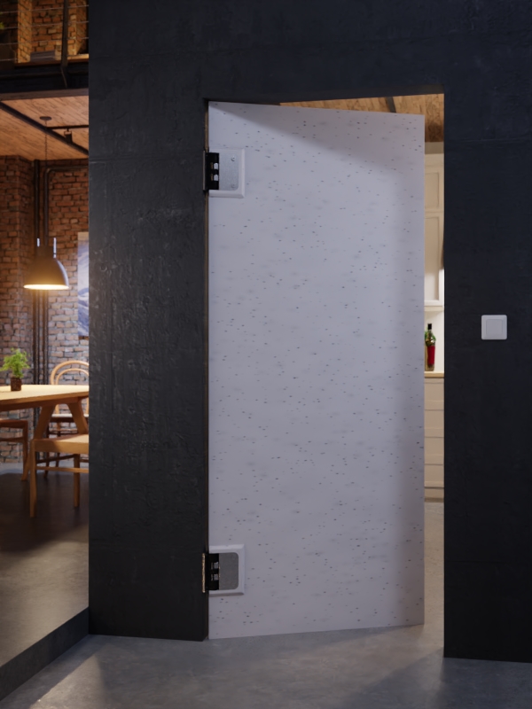 Nowoczesne drzwi wahadłowe z tworzywa sztucznego z płytą montażową i przeszkleniem: