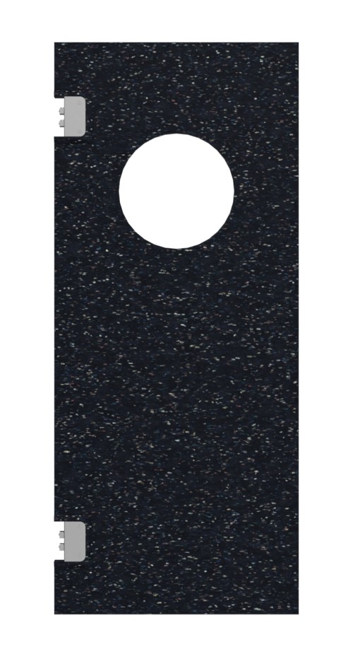 Drzwi wahadłowe wykonane są z łamliwego polietylenu. Grubość skrzydła drzwi wynosi 15 mm - w tym zaokrąglona krawędź skrzydła. Wbudowane szklenie akrylowe również ma grubość 15 mm.