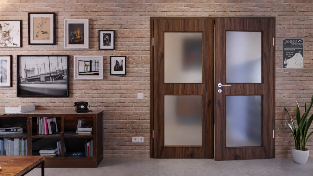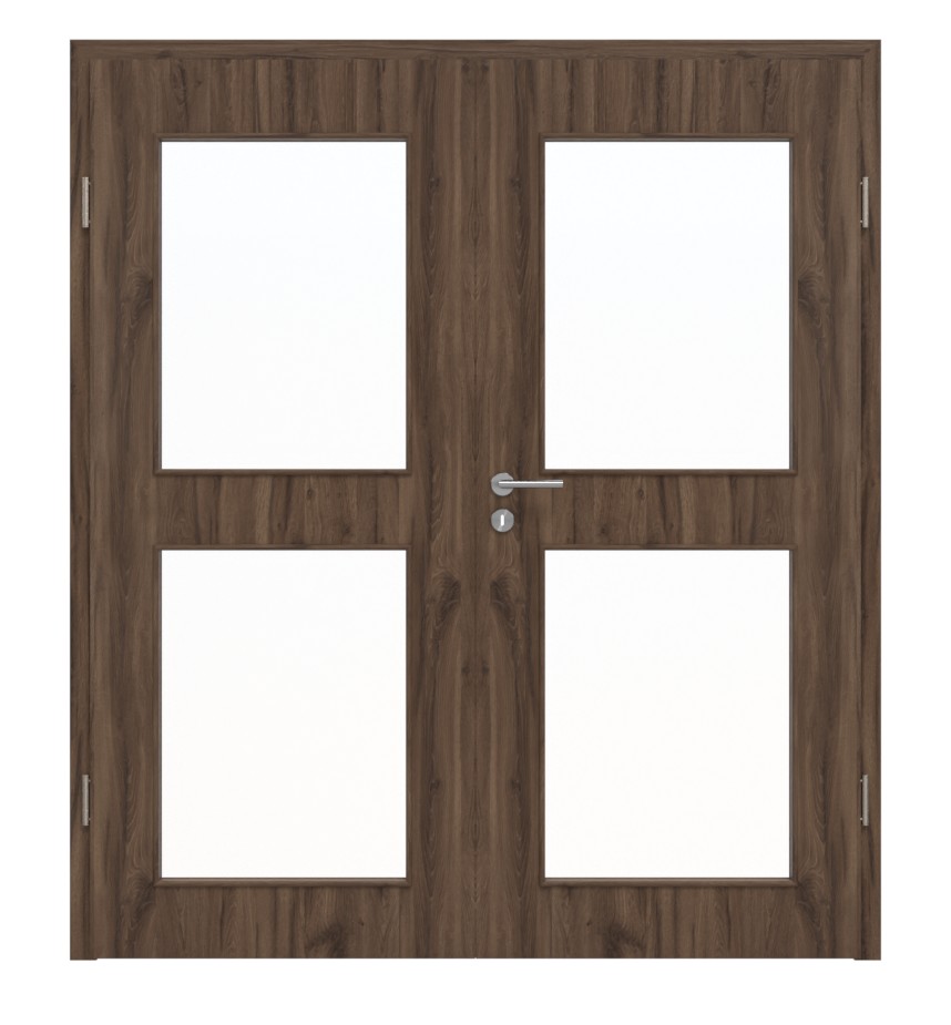 Trwałe drzwi podwójne ProLine w alpejskim dębie z pełną płytą i 3-częściowymi zawiasami: