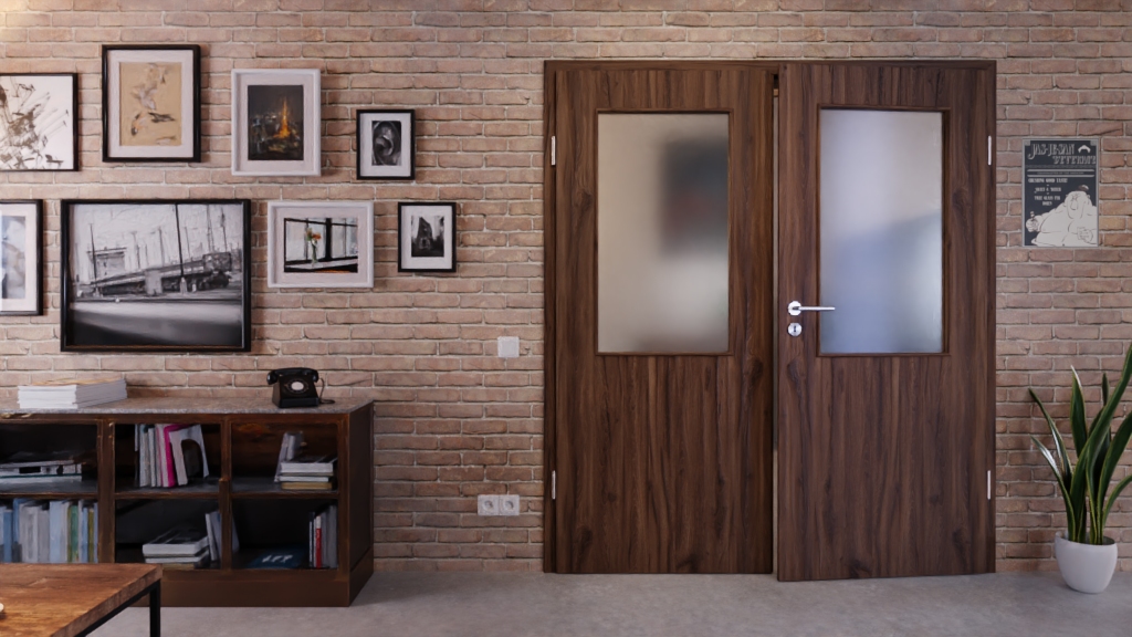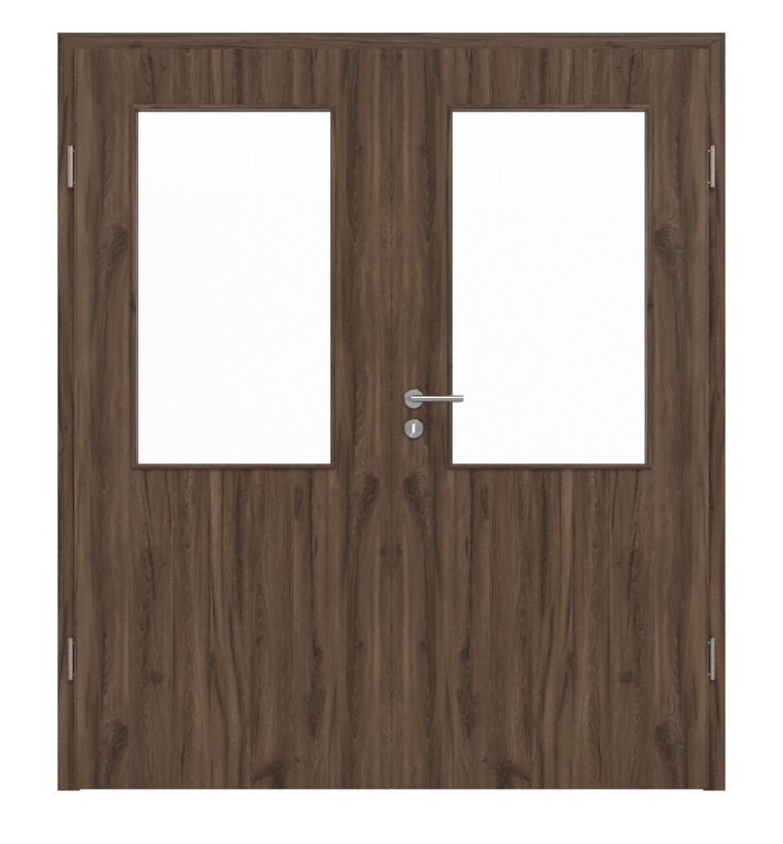 Trwałe drzwi podwójne ProLine w alpejskim dębie z 3-częściowymi zawiasami i pełną płytą jako rdzeń drzwi: