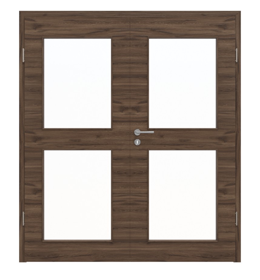 Trwałe drzwi podwójne ProLine w alpejskim dębie w poziomie, w tym 3-częściowe zawiasy i stabilizująca płyta pełnoobwodowa: