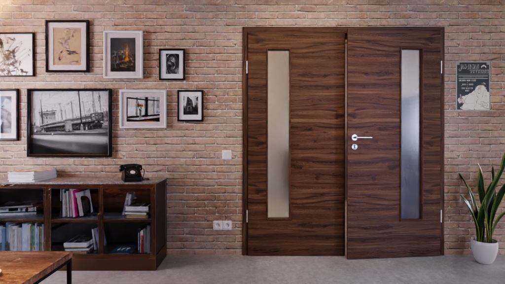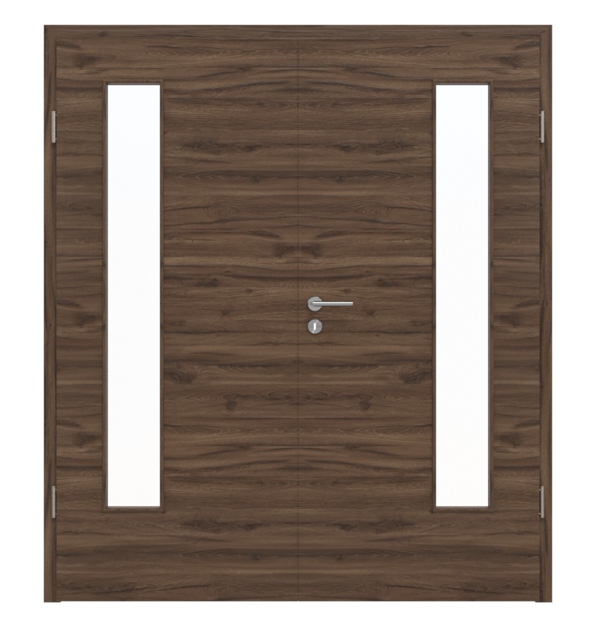 Trwałe drzwi podwójne ProLine w alpejskim dębie w poziomie z solidną płytą pełnoobwodową i 3-częściowymi zawiasami: