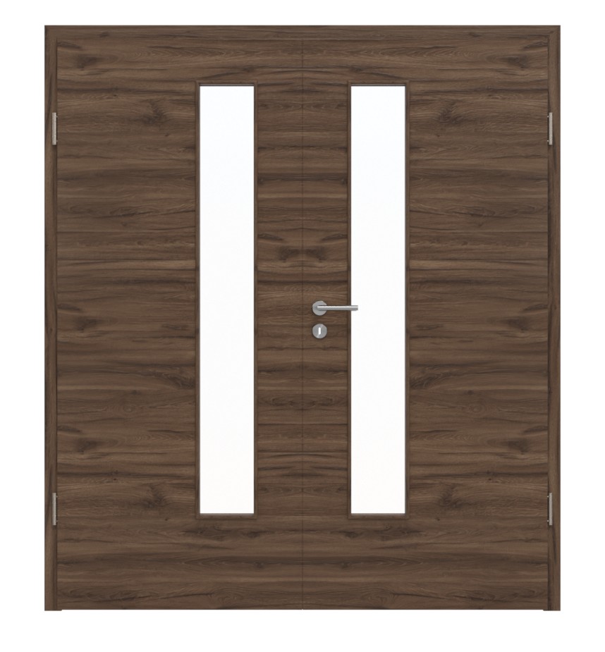 Trwałe drzwi podwójne ProLine w alpejskim dębie w poziomie z solidną płytą pełnoobwodową i 3-częściowymi zawiasami: