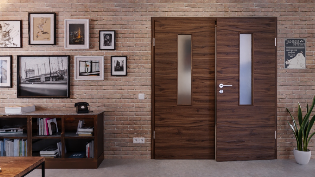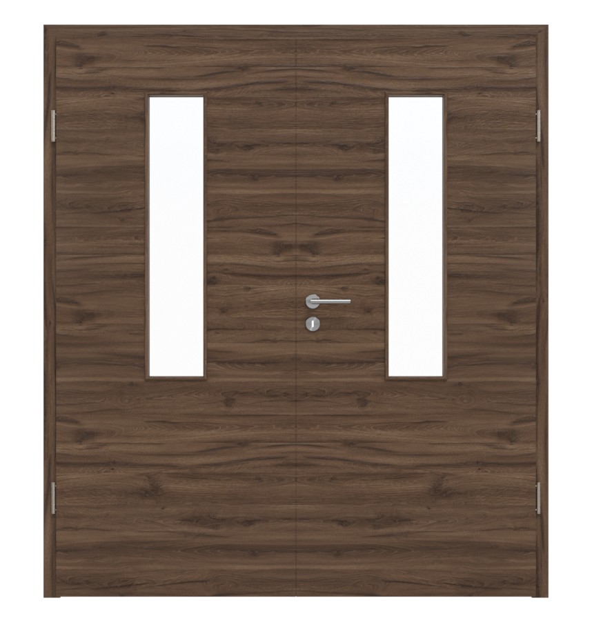Trwałe drzwi podwójne ProLine w alpejskim dębie w poziomie, w tym płyta pełna i 3-częściowe zawiasy: