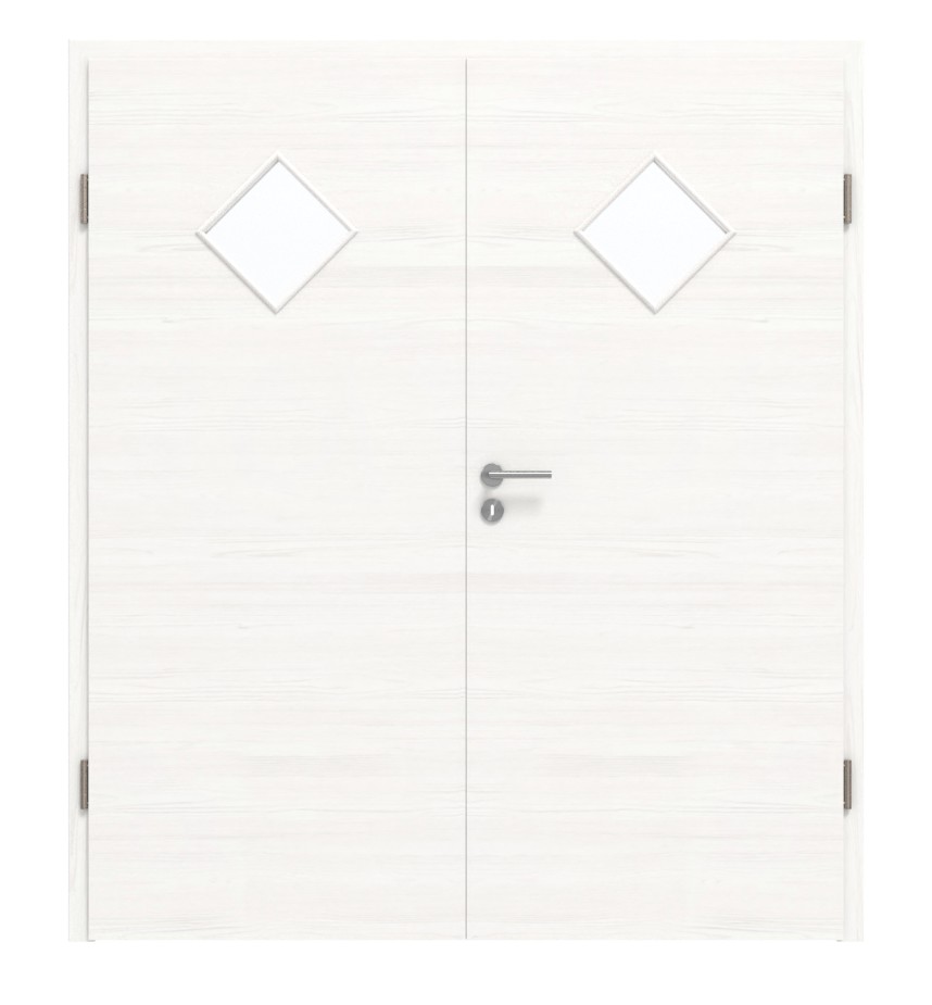 Trwałe drzwi podwójne ProLine w szczotkowanej bieli poziomej, w tym 3-częściowe zawiasy i stabilizująca płyta pełnoobwodowa: