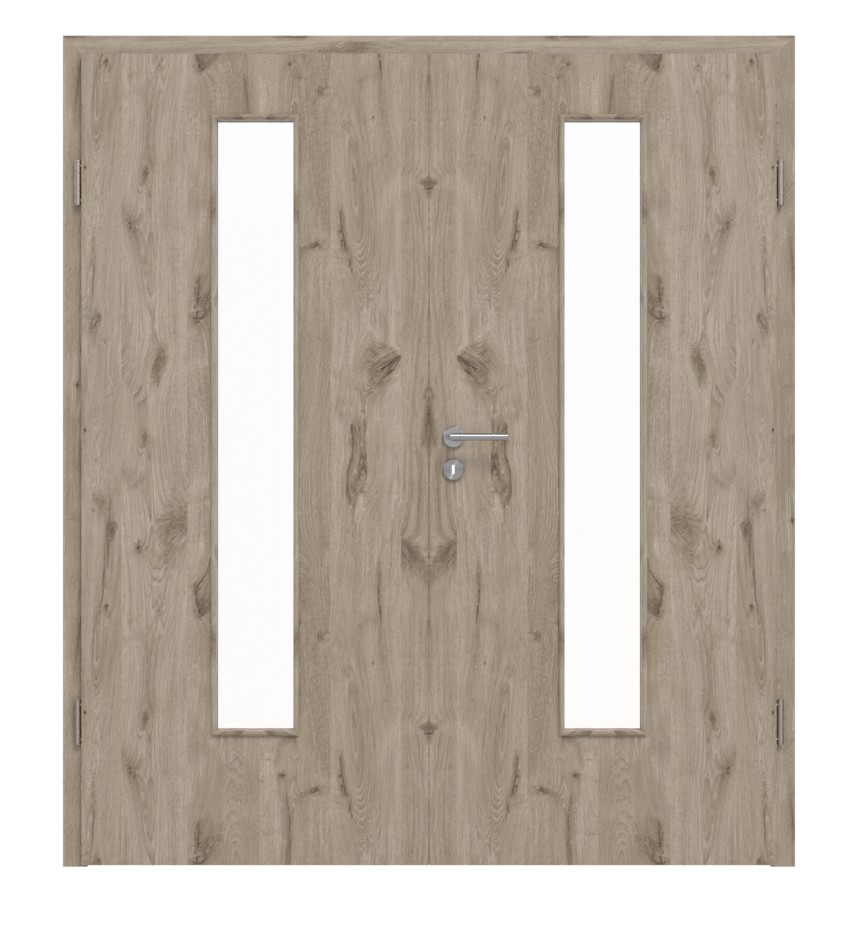 Robustne drzwi podwójne ProLine w północnym dębie z 3-częściowymi zawiasami i stabilizującą płytą pełnoobwodową: