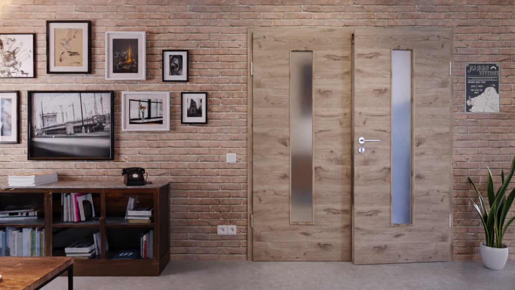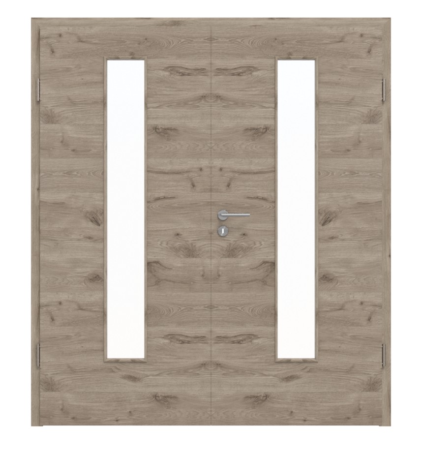 Trwałe drzwi podwójne ProLine w poziomej dębie północnej z solidną płytą pełnoobwodową i 3-częściowymi zawiasami: