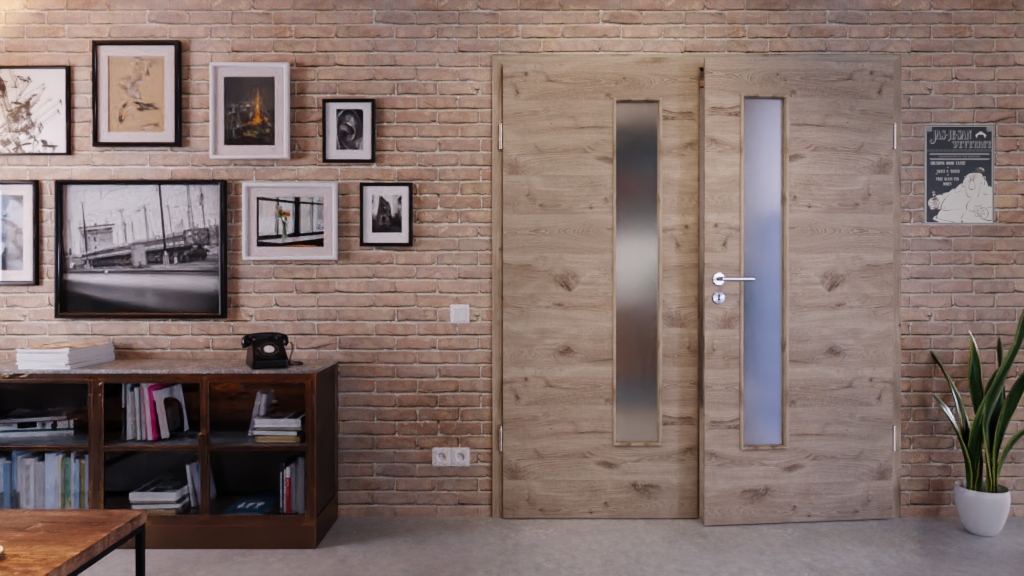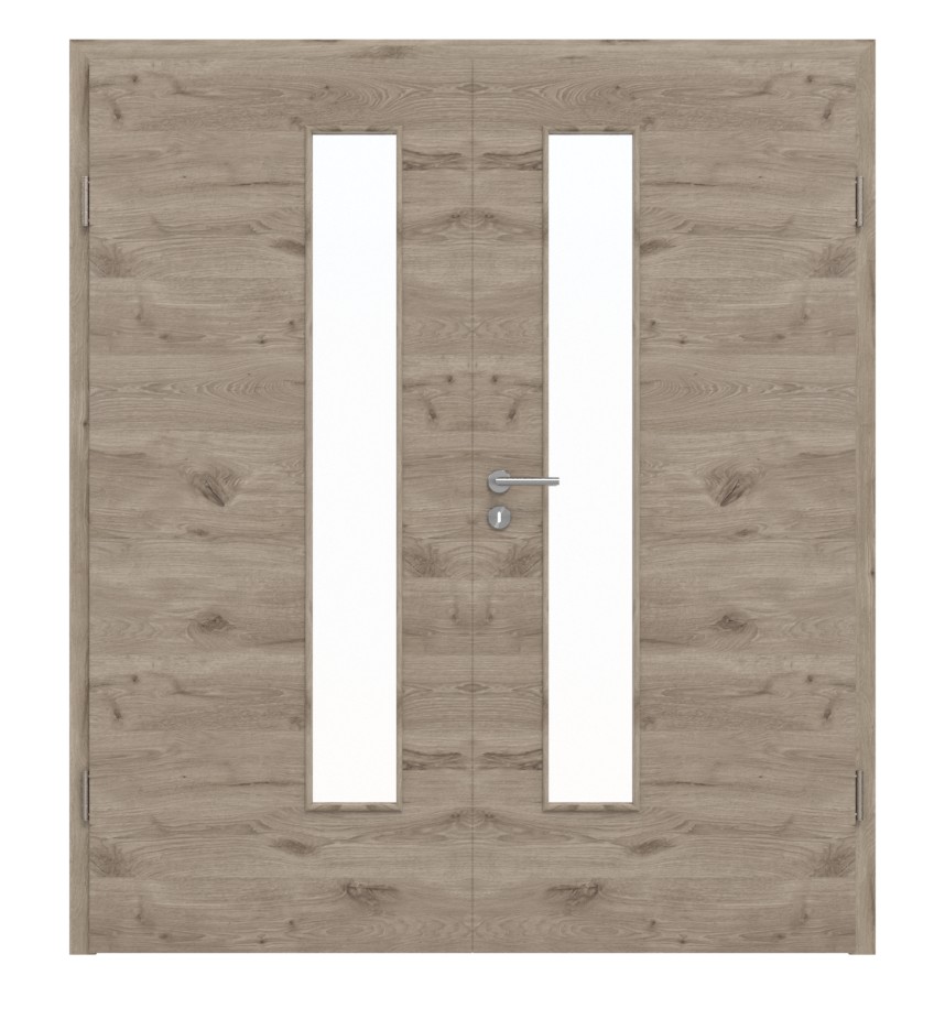 Robustne drzwi podwójne ProLine w dębie północnej w poziomie, w tym płyta pełna i 3-częściowe zawiasy, które zapewniają stabilność: