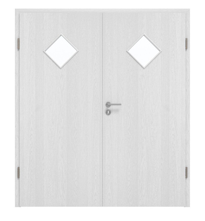 Imponujący styl w podwójnym pakiecie: Drzwi podwójne ProLine LA 6 w kształcie rombu w białym dębie to sprawdzony produkt do aranżacji wnętrz, pochodzący od marki Hörmann.