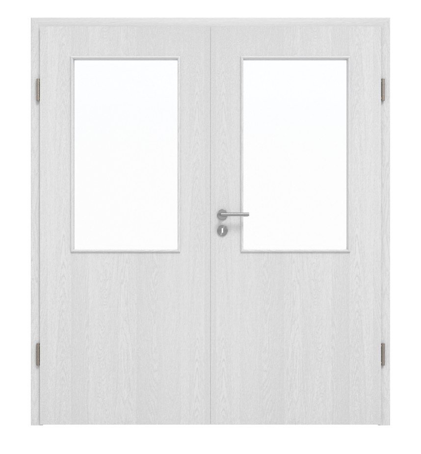 Trwałe drzwi podwójne ProLine w białym dębie z trzema zawiasami i pełną płytą jako rdzeń drzwi: