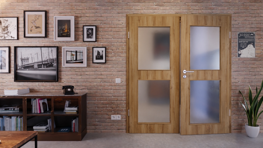 Codzienna, odporna na warunki ProLine podwójna drzwi w naturalnym dębie z pełną płytą i 3-częściowymi zawiasami: