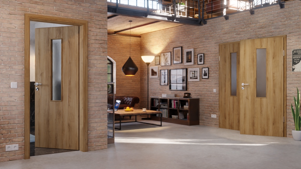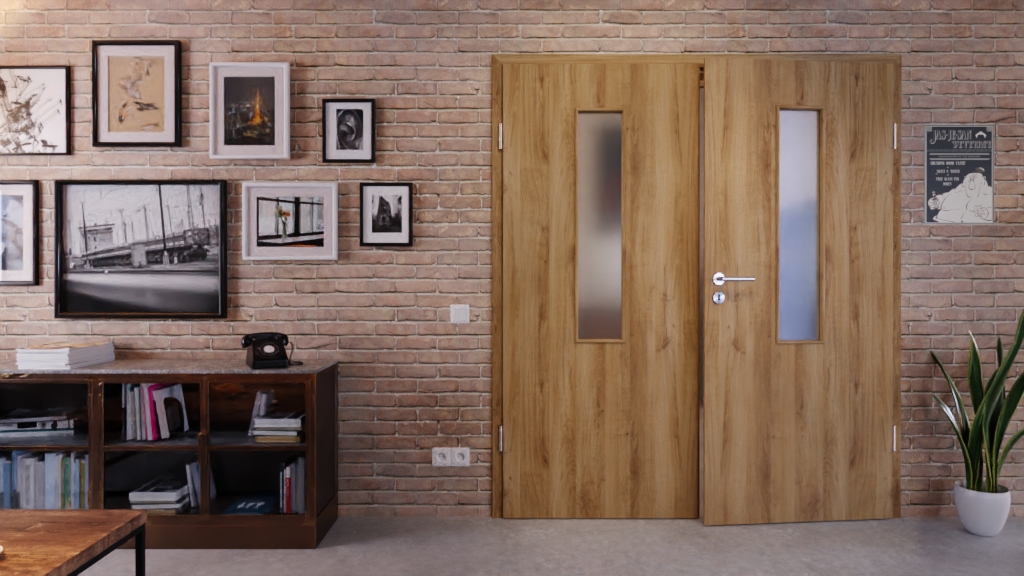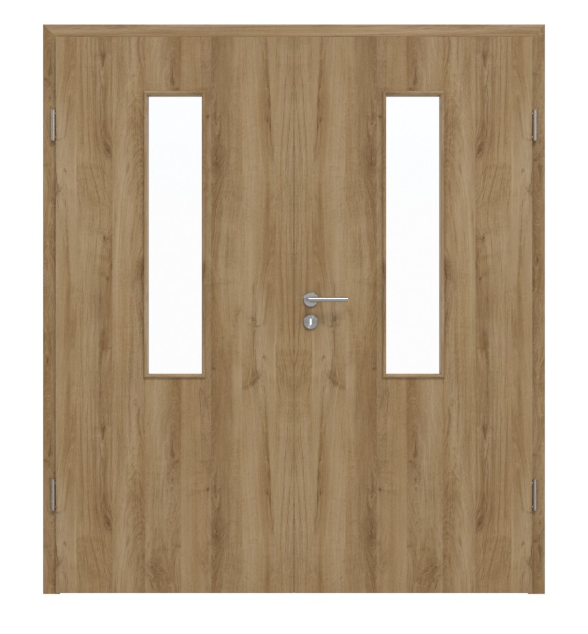 Robustne drzwi podwójne ProLine w naturalnym dębie z pełną płytą i 3-częściowymi zawiasami: