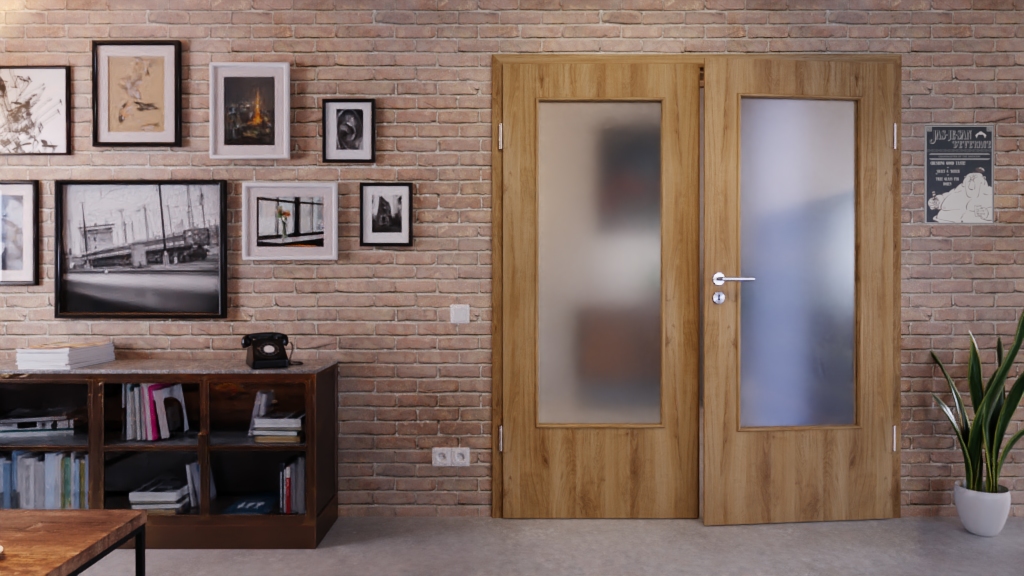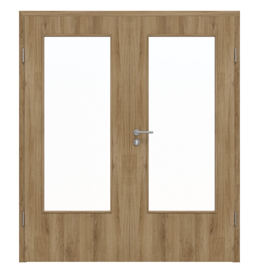 Trwałe drzwi podwójne ProLine w naturalnym dębie z solidną płytą pełnoobwodową i 3-częściowymi zawiasami: