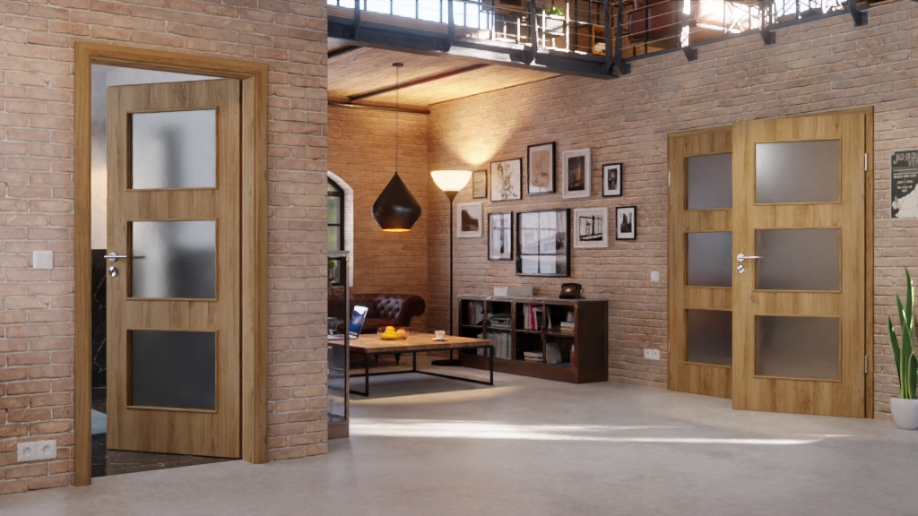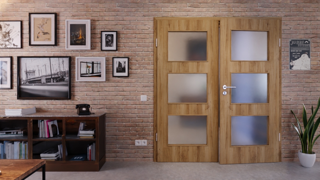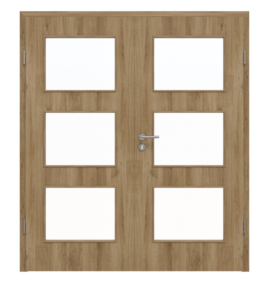 Robustne drzwi podwójne ProLine w naturalnym dębie z pełną płytą i 3-częściowymi zawiasami: