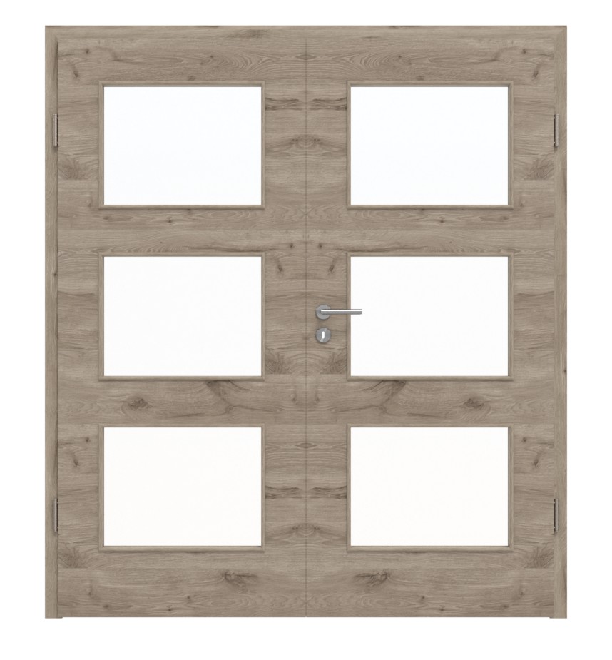Trwałe drzwi podwójne ProLine w poziomej dębie północnej z 3-częściowymi zawiasami i pełną płytą jako rdzeń drzwi: