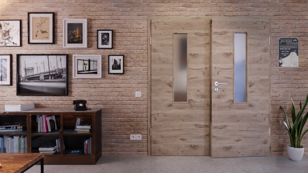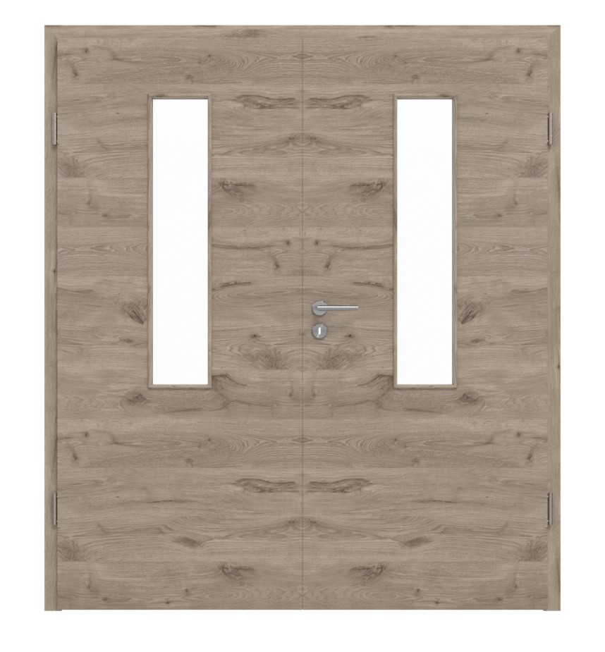 Trwałe drzwi podwójne ProLine w poziomej dębie północnej, w tym 3-częściowe zawiasy i stabilizująca płyta pełno-włóknista: