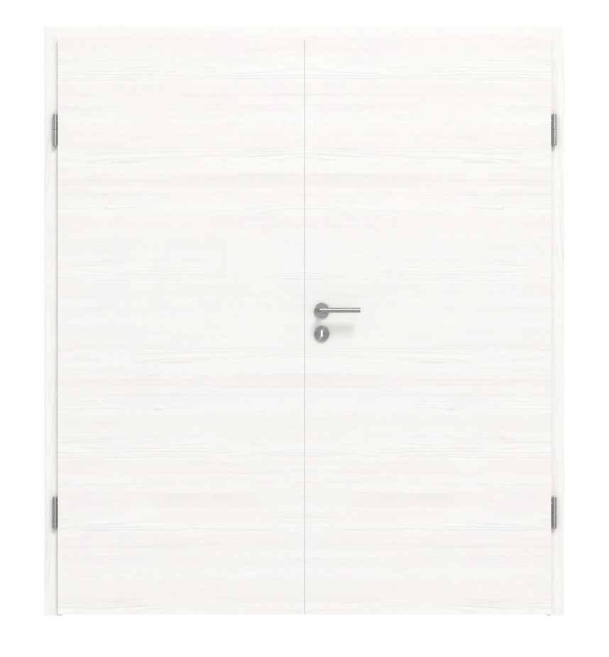 Trwałe drzwi podwójne ProLine w szczotkowanej bieli poziomej z stabilną płytą wiórową i dwuczęściowymi zawiasami: