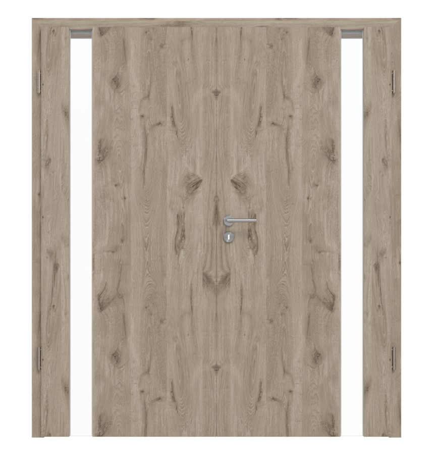 Wewnątrz obu skrzydeł drzwi znajduje się stabilna płyta pełna. Dzięki standardowym 3-częściowym zawiasom istnieje mocne połączenie między skrzydłami drzwi a ościeżnicą.