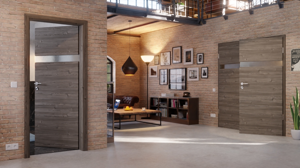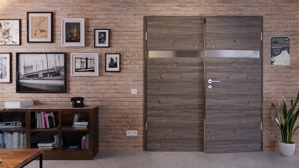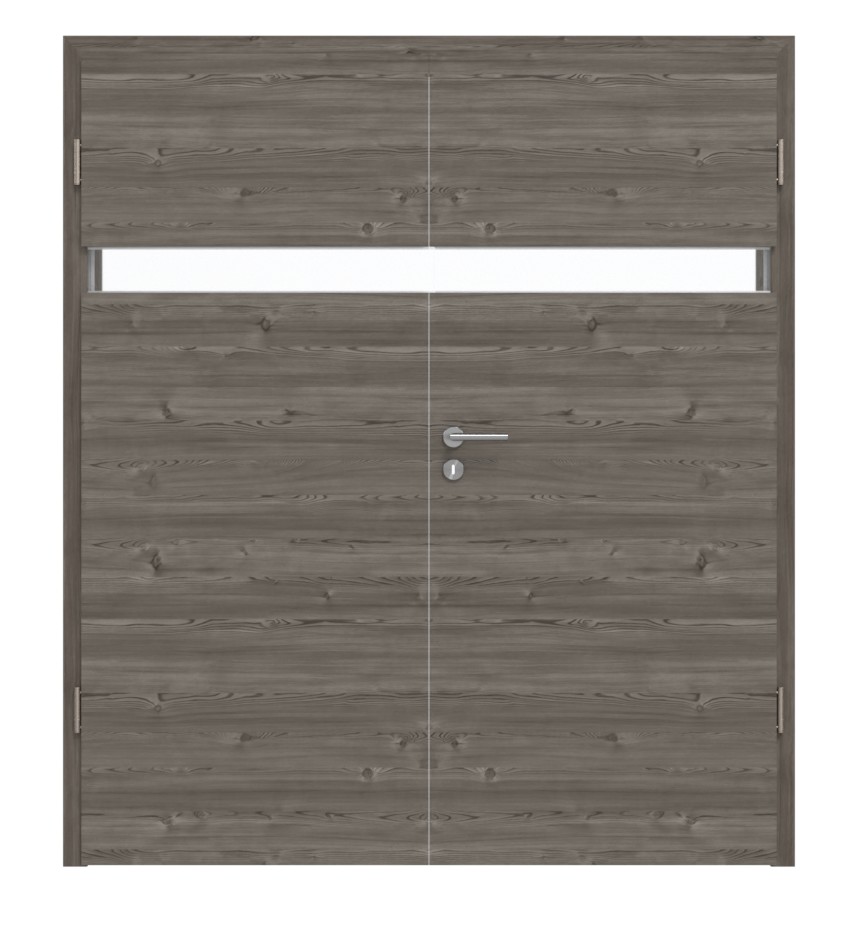 Elegancja i codzienna funkcjonalność: Drzwi podwójne Pure 1 w poziomej ciemnej sosnie od Hörmann wprowadzają otwartość do Twojego wnętrza.