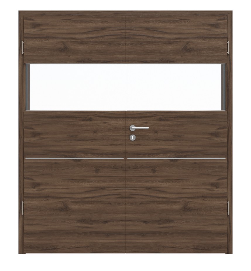 Praktyczne cechy, elegancki design: Drzwi podwójne Pure 2 poziome Plain 79-7 w alpejskim dębie poziomym od Hörmann wprowadzają otwartość do Twojego wnętrza.