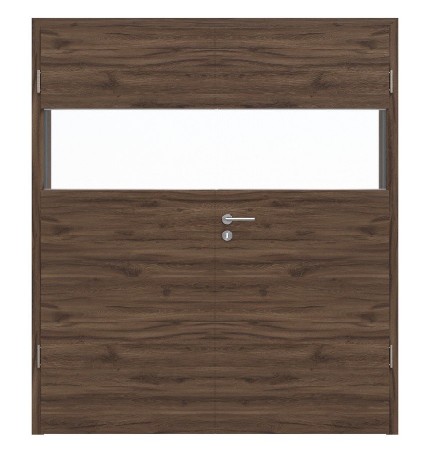 - Drzwi podwójne z odporną na zarysowania powłoką Duradecor w poziomej dębie alpejskiej