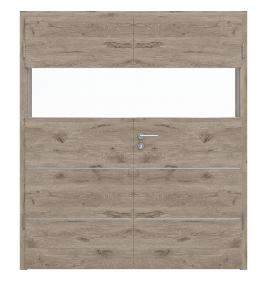 -  Drzwi podwójne z odporną na ścieranie powierzchnią Duradecor w poziomym dębie północnym