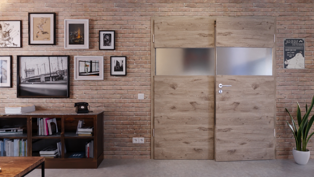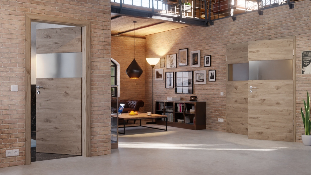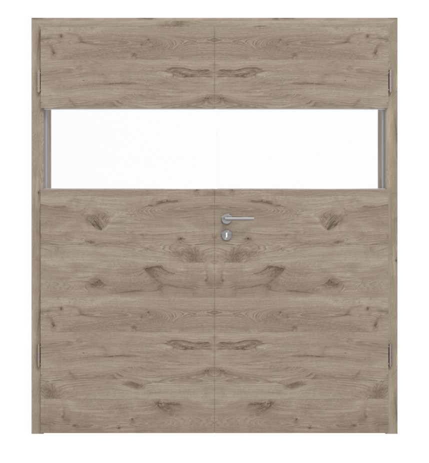 Widoczne usłojenie tworzy niepowtarzalny design na skrzydle drzwi w poziomej optyce. Na wysokości oczu znajduje się duża szyba, przez którą do Twoich pomieszczeń wpada dużo światła.