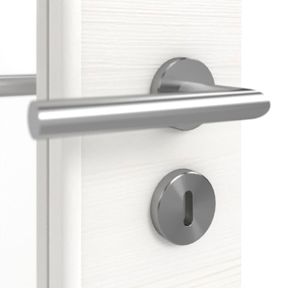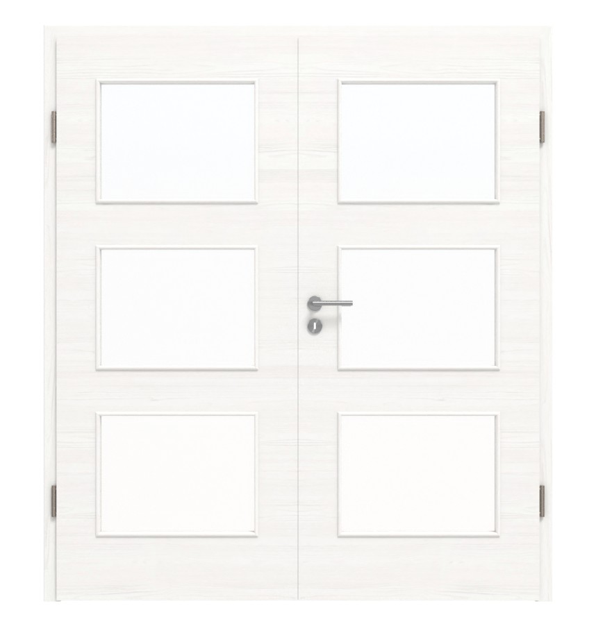 Trwałe drzwi podwójne ProLine w szczotkowanej bieli poziomej, w tym 3-częściowe zawiasy i stabilizująca płyta pełnoobwodowa: