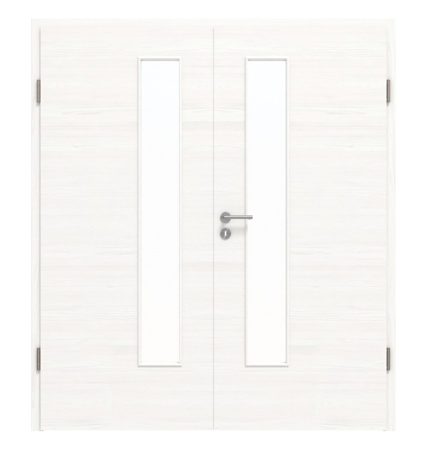 Robustne drzwi podwójne ProLine w szczotkowanej bieli poziomej, w tym 3-częściowe zawiasy i stabilizująca płyta pełno-włóknista: