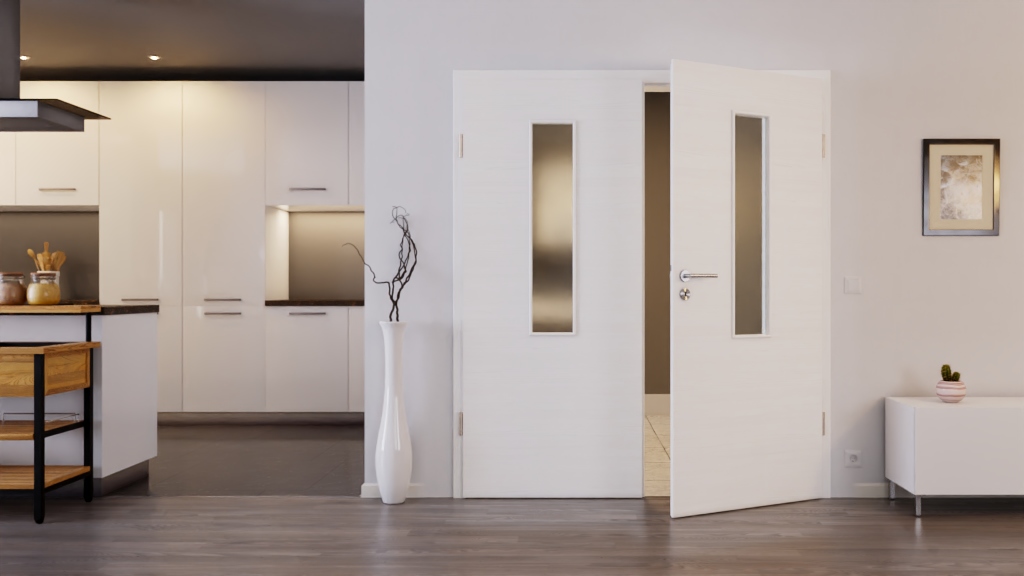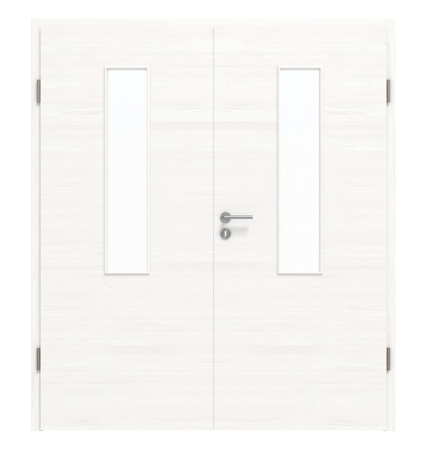 Trwałe drzwi podwójne ProLine w szczotkowanej bieli poziomej, w tym płyta pełna i 3-częściowe zawiasy, które zapewniają stabilność: