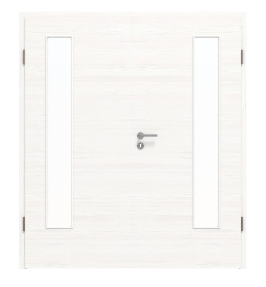 Trwałe drzwi podwójne ProLine w szczotkowanej bieli poziomej, w tym płyta pełna i 3-częściowe zawiasy, które zapewniają stabilność: