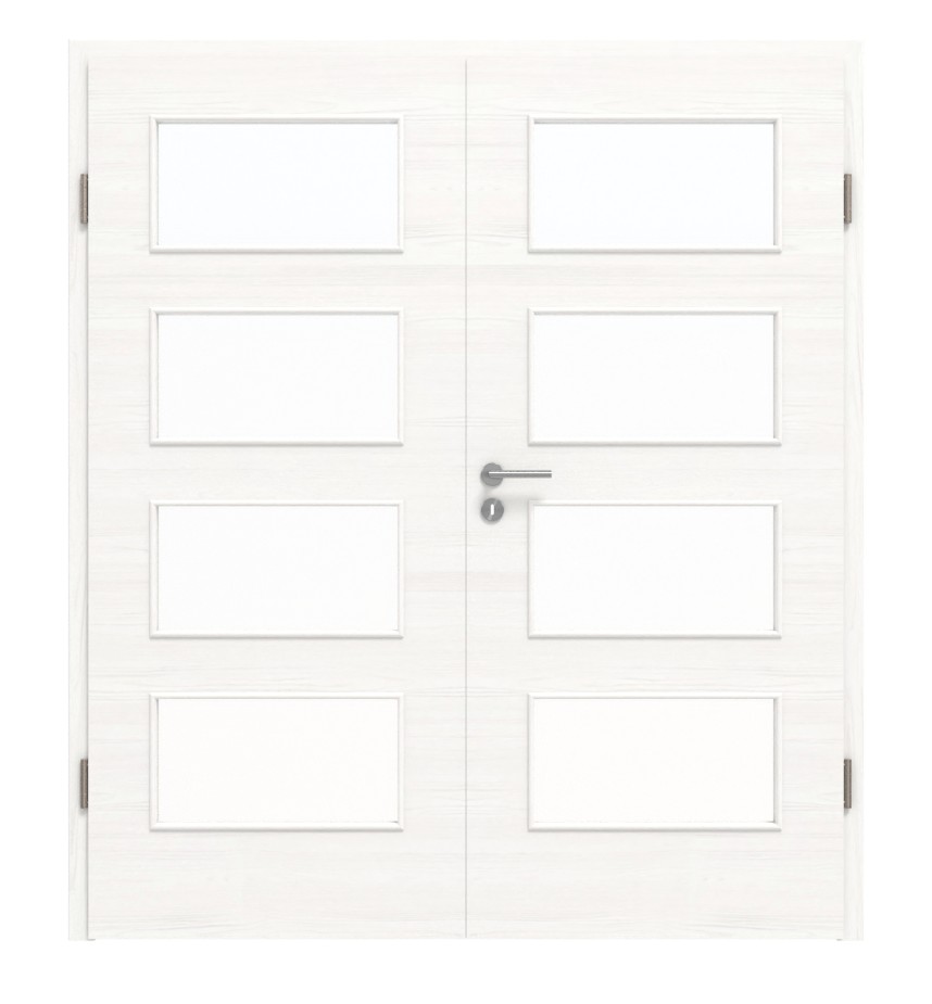 HÖRMANN drzwi dwuskrzydłowe biel szczotkowana wzdłuż Duradecor ProLine z przeszkleniem LA 9 z ościeżnicą
