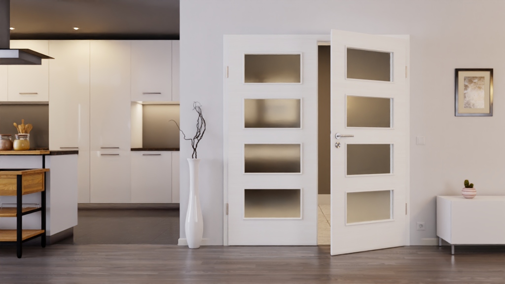 Trwałe drzwi podwójne ProLine w szczotkowanej bieli z 3-częściowymi zawiasami i płytą pełno-włóknistą jako rdzeń drzwi:
