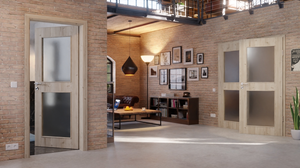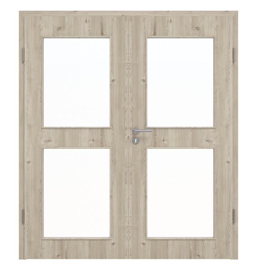 Robustne drzwi podwójne ProLine w jasnym szczotkowanym modrzewiu, w tym płyta pełna i 3-częściowe zawiasy: