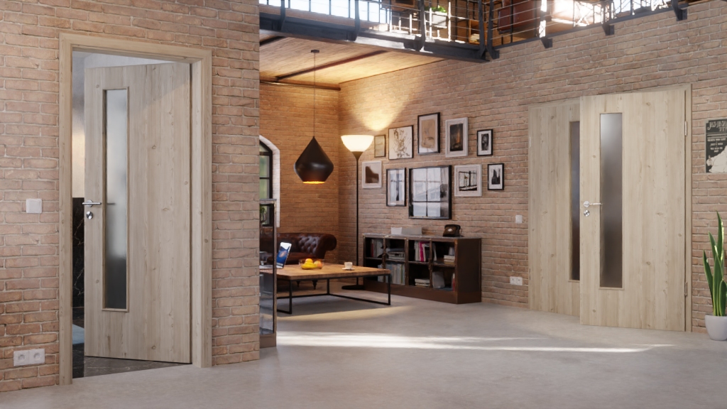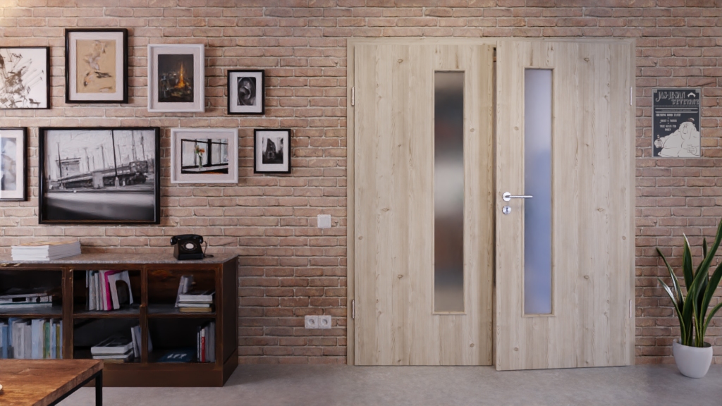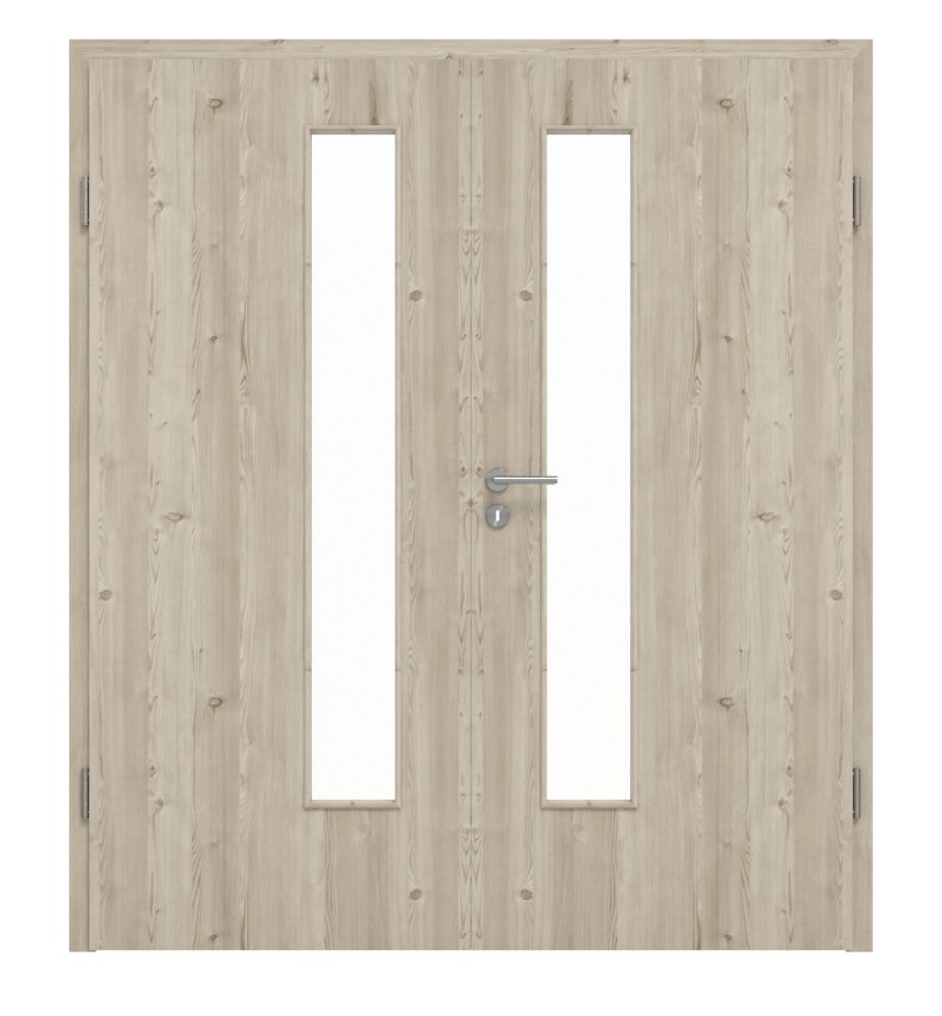 Trwałe drzwi podwójne ProLine w szczotkowanej jasnej larice z wysokiej jakości pełną płytą i trzema zawiasami: