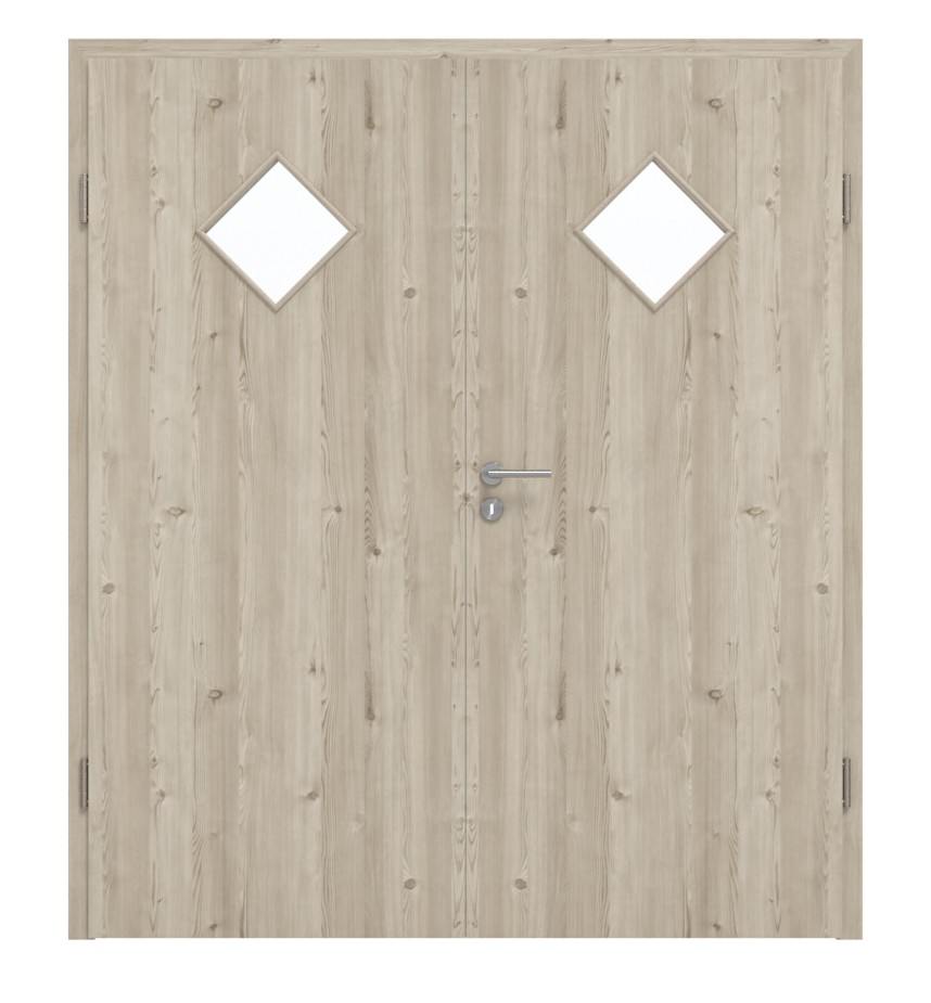 Robustne drzwi podwójne ProLine w szczotkowanej jasnej larice z wysokiej jakości pełną płytą i 3-częściowymi zawiasami: