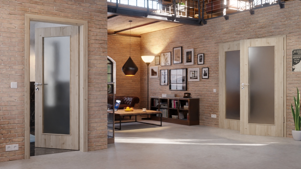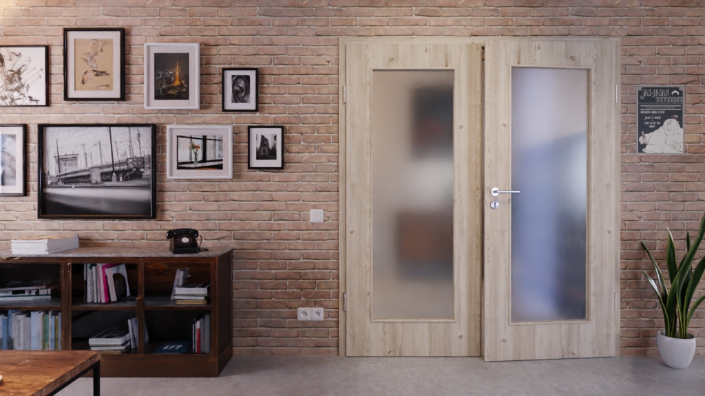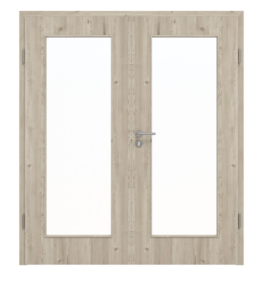 Trwałe drzwi podwójne ProLine w jasnym szczotkowanym modrzewiu z solidną płytą wiórową i 3-częściowymi zawiasami: