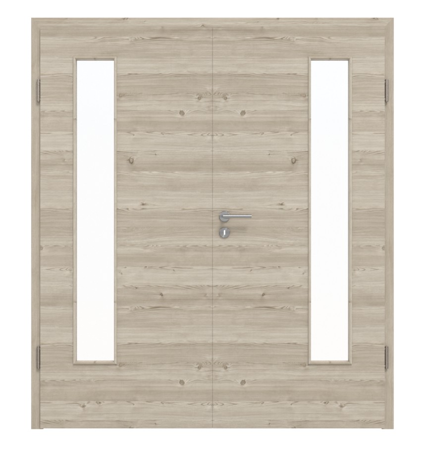 Robustne drzwi podwójne ProLine w jasnym szczotkowanym modrzewiu poziomo, w tym 3-częściowe zawiasy i stabilizująca płyta pełno-włóknista: