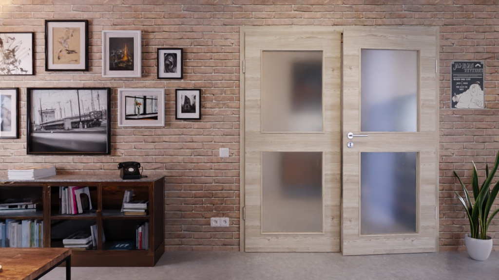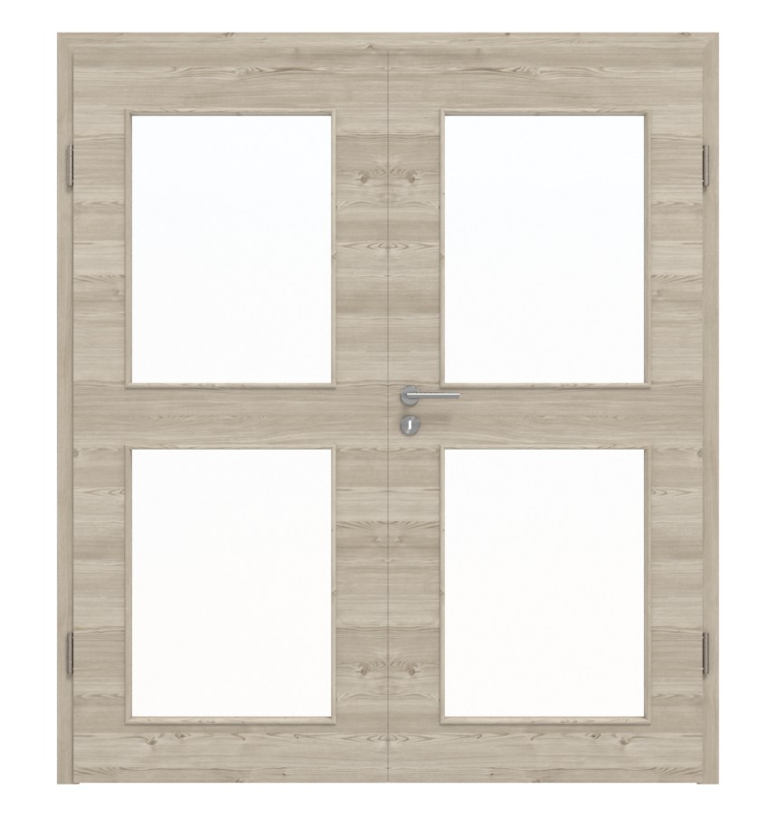 Trwałe drzwi podwójne ProLine w jasnym szczotkowanym świerku poziomym z solidną płytą pełnoobwodową i trzema częściami zawiasów: