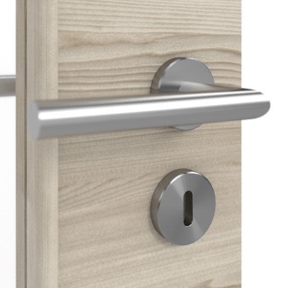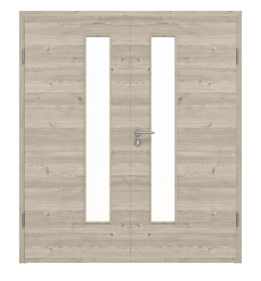 Robustne drzwi podwójne ProLine w jasnym szczotkowanym modrzewiu poziomo, w tym 3-częściowe zawiasy i stabilizująca płyta pełno-włóknista: