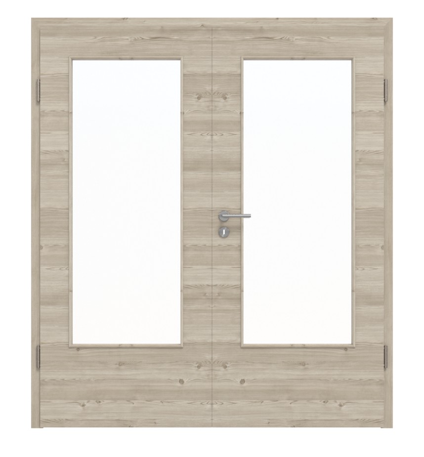 Robustne drzwi podwójne ProLine w jasnym szczotkowanym modrzewiu poziomym z pełną płytą i 3-częściowymi zawiasami: