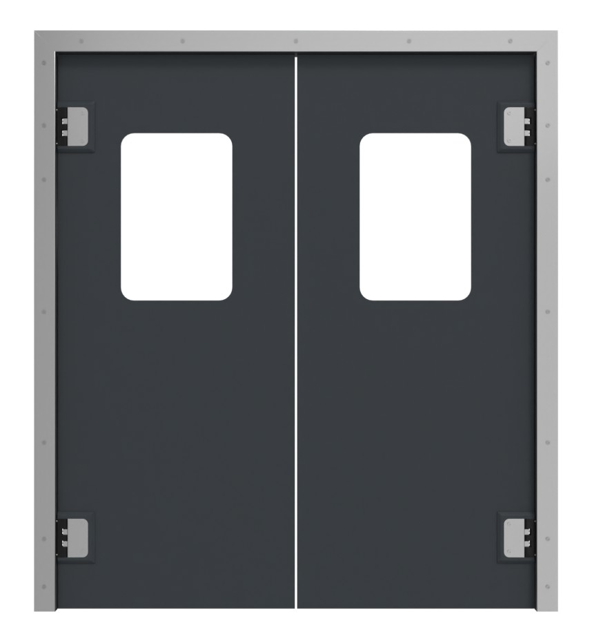 W standardowym wyposażeniu znajdują się dwa skrzydła drzwi wahadłowych, odpowiednia rama obwodowa oraz cztery zawiasy ze stali nierdzewnej. Drzwi mogą być stosowane wewnątrz budynków.