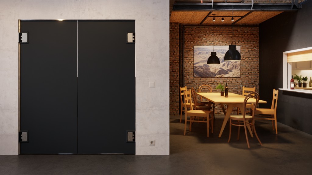 W cenie zawarte są dwa skrzydła drzwi wahadłowych, płyty montażowe oraz cztery zawiasy ze stali nierdzewnej. Konstrukcja może być stosowana wewnątrz budynków.