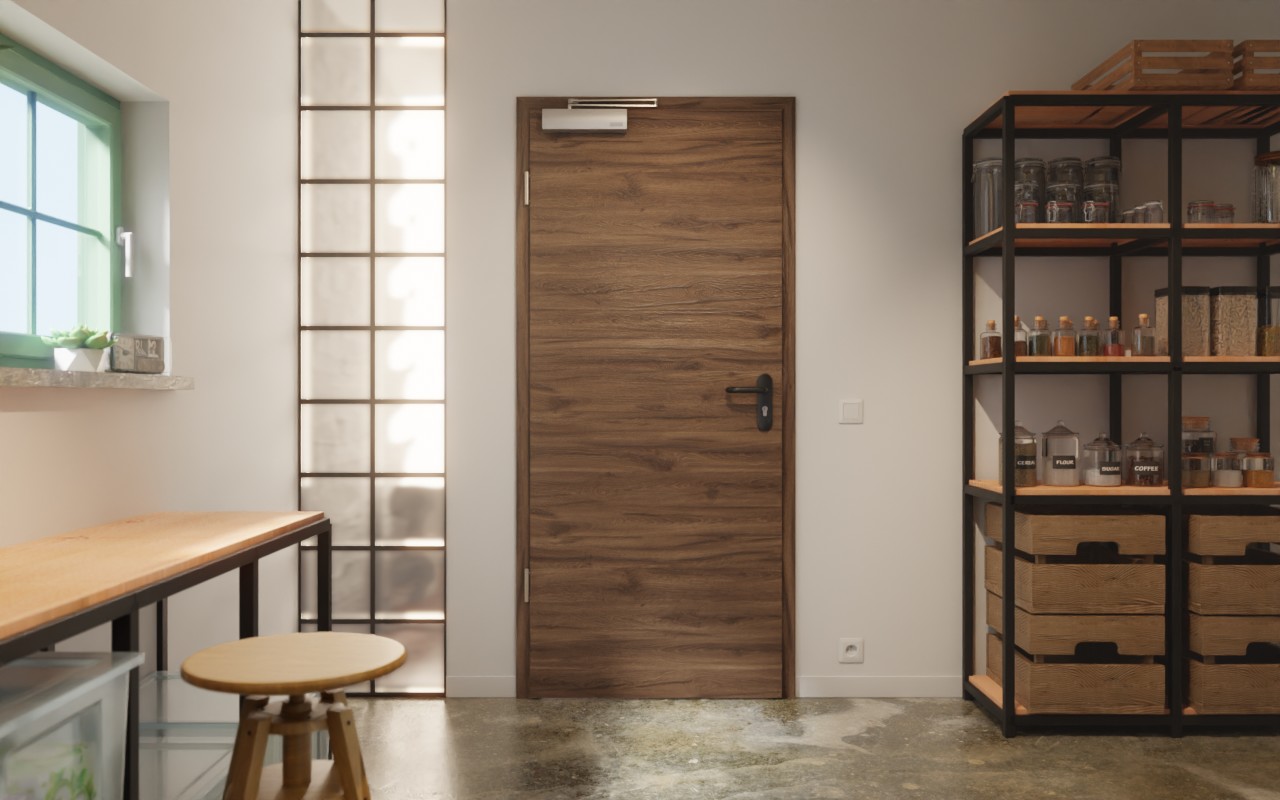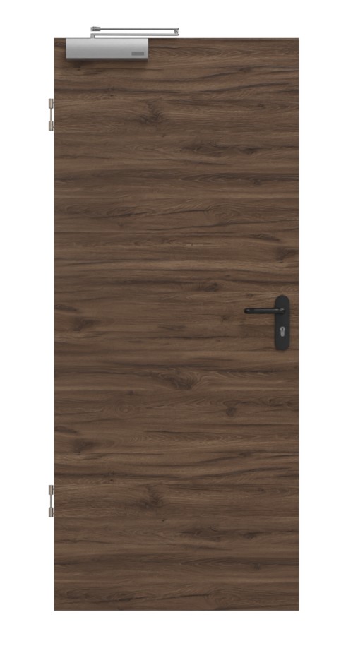 Drzwi przeciwpożarowe Hörmann z wytrzymałą powierzchnią Duradecor, które zatrzymują rozprzestrzenianie się ognia między oddzielnymi pomieszczeniami: