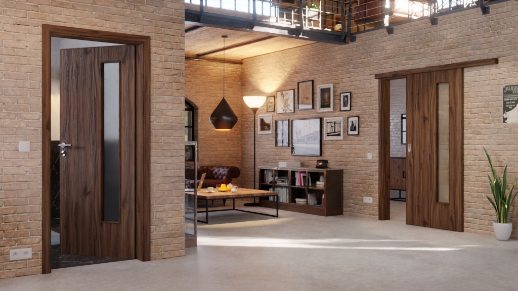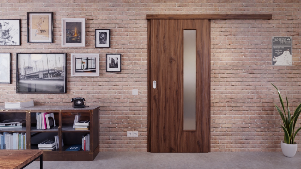Praktyczne drzwi przesuwne LA-24 w kolorze dąb alpejski z wpustem na prowadnicę dolną.