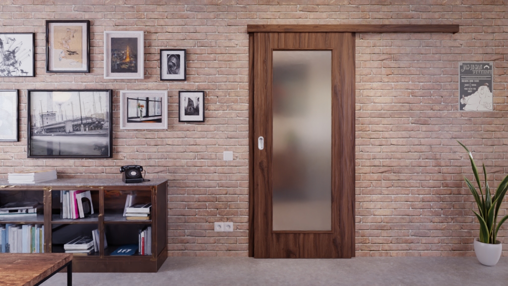Robustne drzwi przesuwne ProLine w alpejskim dębie z pełną płytą, która zapewnia stabilność: