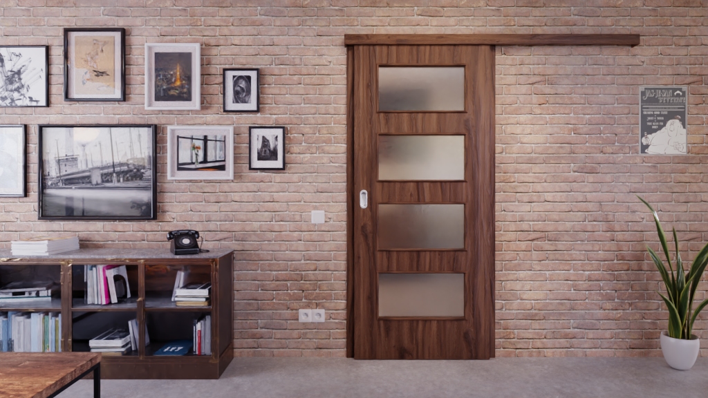 Trwałe drzwi przesuwne ProLine w alpejskim dębie z płytą pełno-włóknistą jako rdzeń drzwi: